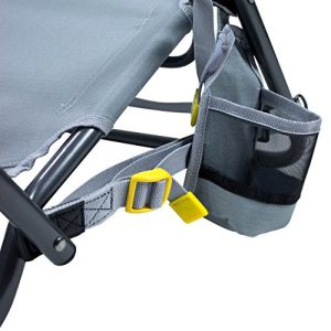 Details: The GCI Outdoor everywhere portable hillside chair offers a secure and comfortable seat anywhere, even when there’s not a patch of flat ground in sight. Perfect for hillside concerts, and other uneven outdoor terrain, it features a patented hillside adjustment strap and buckle system which compensates for sloping, rocky, and other less-than-ideal surfaces. It even has an adjustable backrest for lounging at camp, concerts, picnics, and tailgates, and a built-in beverage holder for keeping drinks at the ready. Mesh paneling ensures airflow for ventilated seating that stays cool, even when the temperature rises. The auto-fold carrying strap automatically folds the chair for fast and easy portability. Seat height is 10 inches, and the sturdy powder-coated steel frame supports up to 250 pounds. The GCI Outdoor everywhere portable hillside chair measures 26.8 x 20.2 x 24.4 inches, collapses to 3.1 x 20.2 x 28.1 inches, and weighs 5.4 pounds. Manufacturer’s limited lifetime warranty.